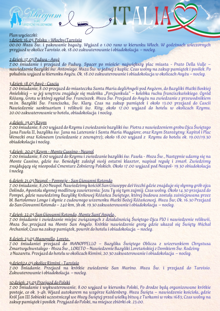 Pielgrzymka do Włoch maj 2026 r.